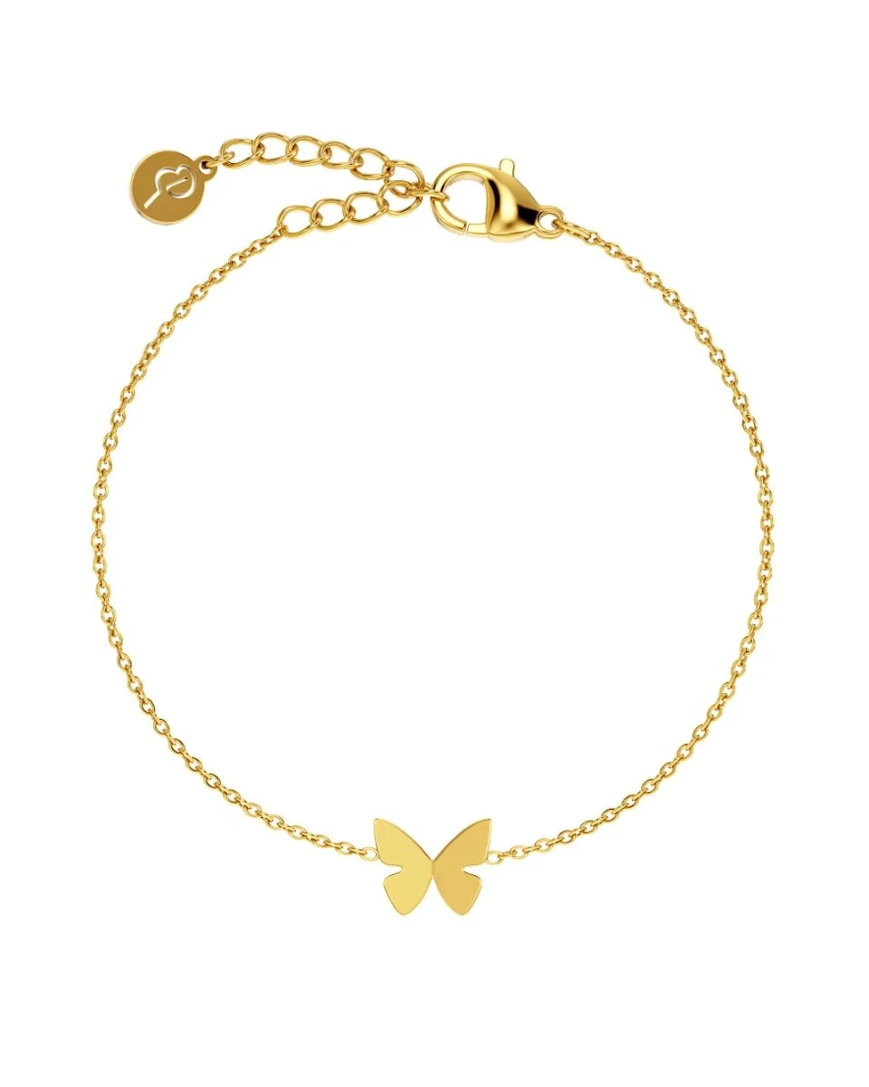 The Papillon series features a stylized butterfly in motion, depicted here in a shimmering 14k gold-plated finish, available for both mother and daughter.